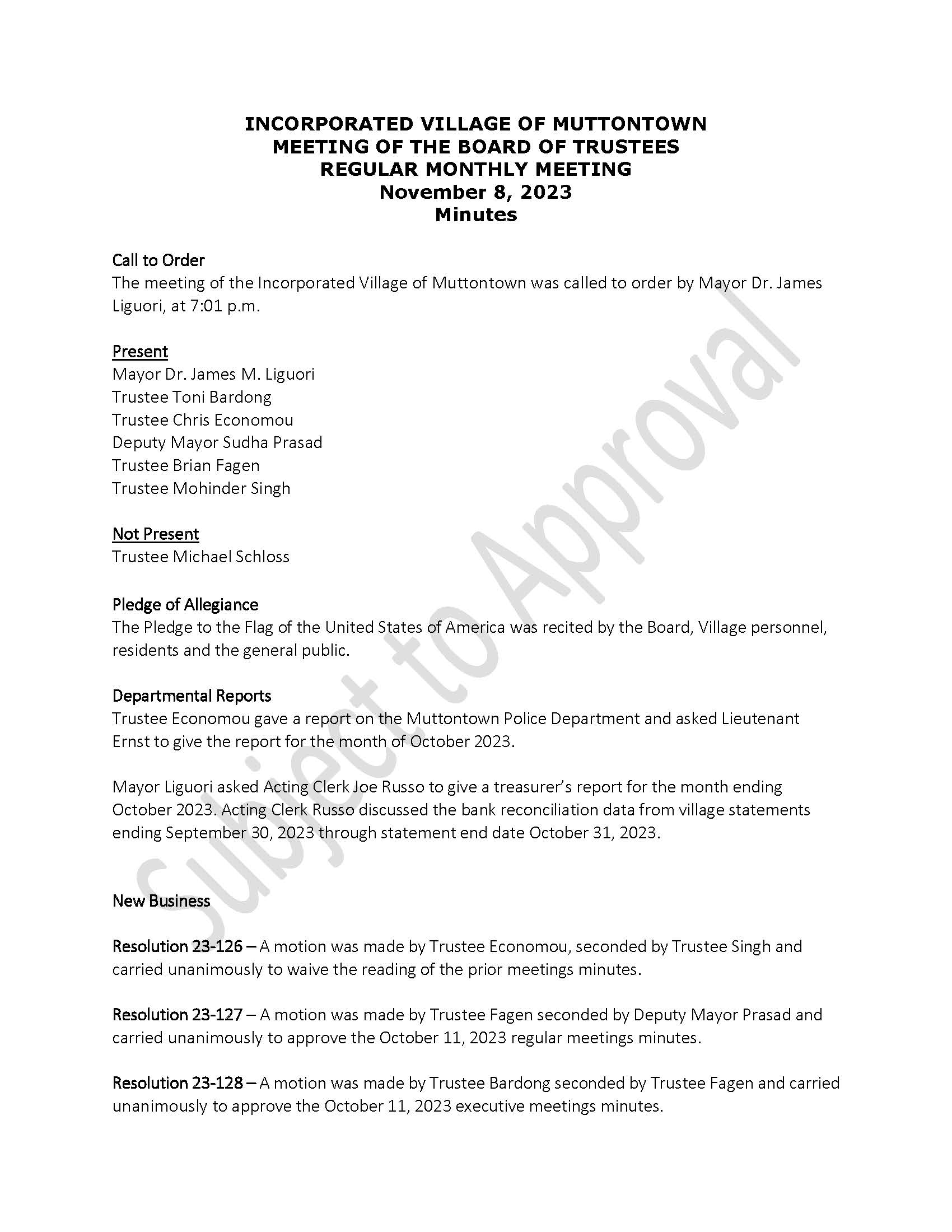 November 8th 2023 Draft Minutes