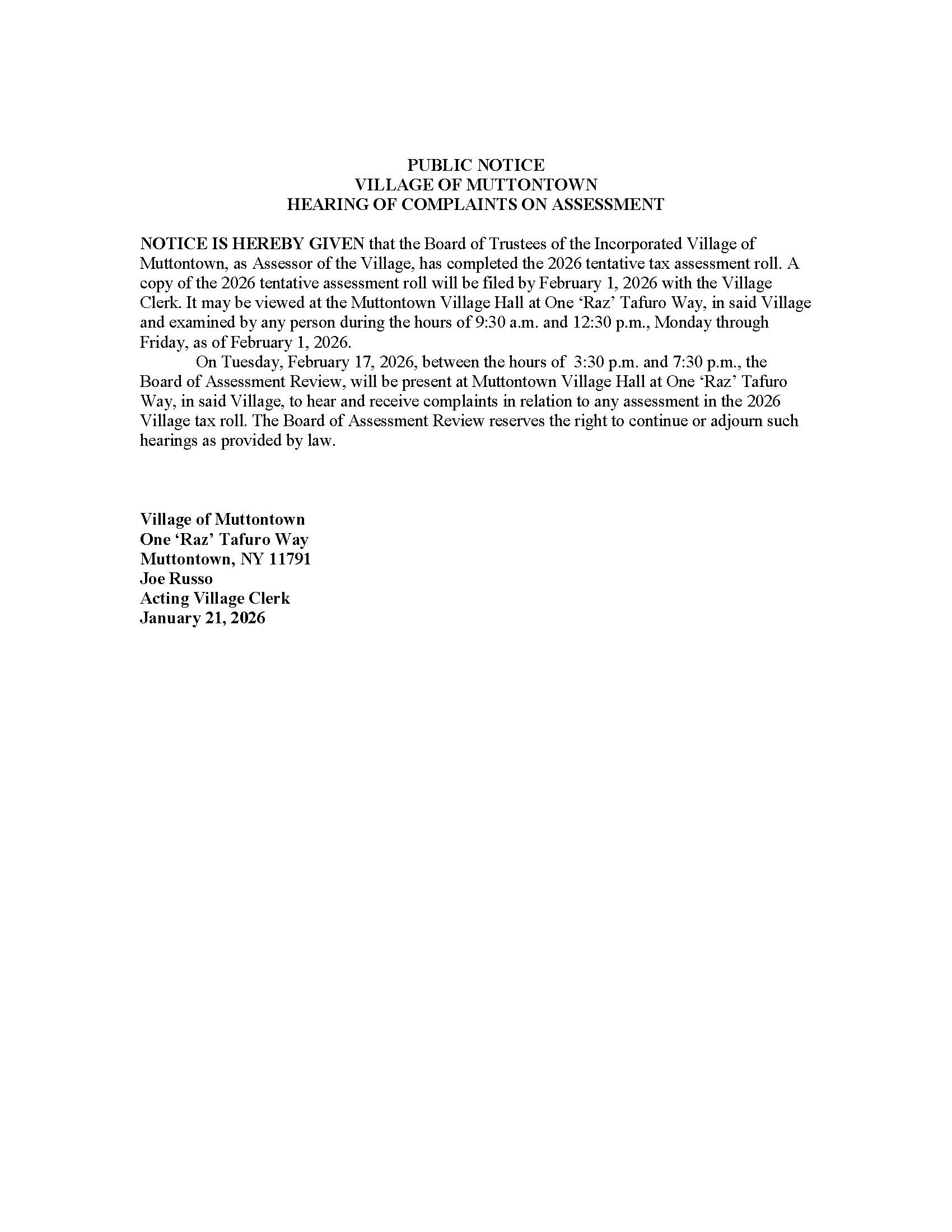Wed, Feb 11, 2026 Trustee Meeting Muttontown Village Hall, Muttontown NY |
